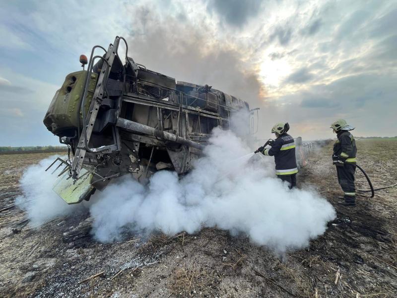 Október 11-én délután Törökszentmiklós határában teljes terjedelmében égett egy kombájn. Az esethez a szolnoki hivatásos, valamint a törökszentmiklósi önkormányzati tűzoltókat riasztották, akik két vízsugárral és kéziszerszámokkal avatkoztak be. A lángok egy napraforgótáblát veszélyeztettek, de a tűzoltóknak köszönhetően a tűz nem terjedt tovább. A kombájnban 20 mázsa napraforgómag volt, amelyet az egységek leürítettek. (fotó: Szolnok HTP)