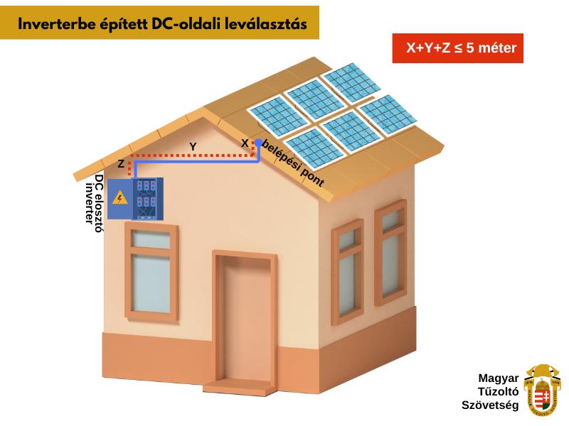 1. Inverterbe épített DC-oldali leválasztás, ha az adott DC-kábel épületbe való belépési pontjától indult belső DC-nyomvonal teljes hossza nem haladja meg az 5 métert és nem halad át egymás feletti/alatti egynél több szinten.