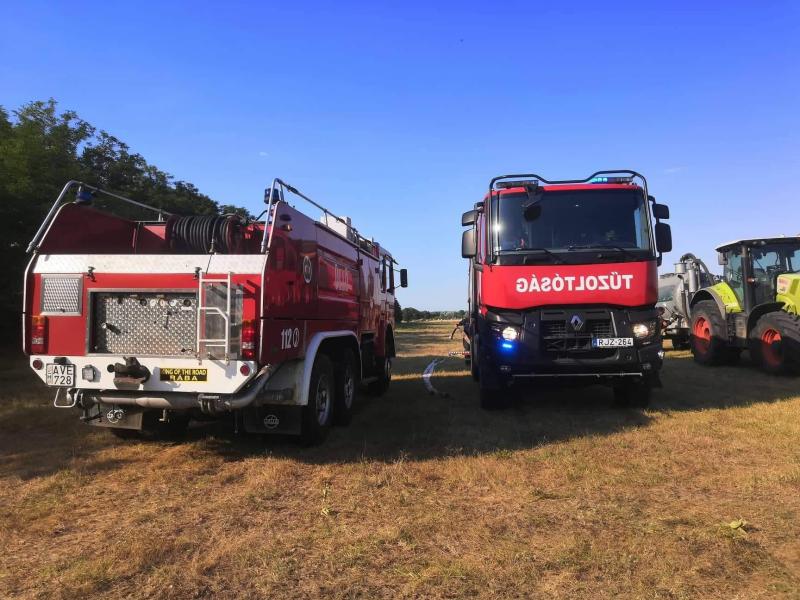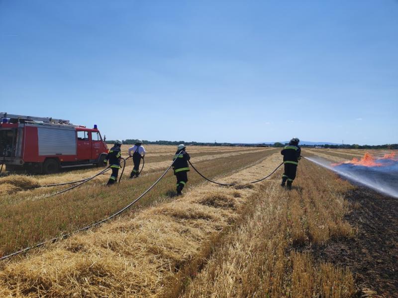 Kedd délután Lövő és Röjtökmuzsaj között égett a tarló mintegy egy hektáros területen. A sopronkövesdi és soproni hivatásos tűzoltók mellett a lövői, völcseji és fertőszentmiklósi önkéntes tűzoltók is részt vettek a lángok megfékezésében. (fotó: Lövő ÖTE)