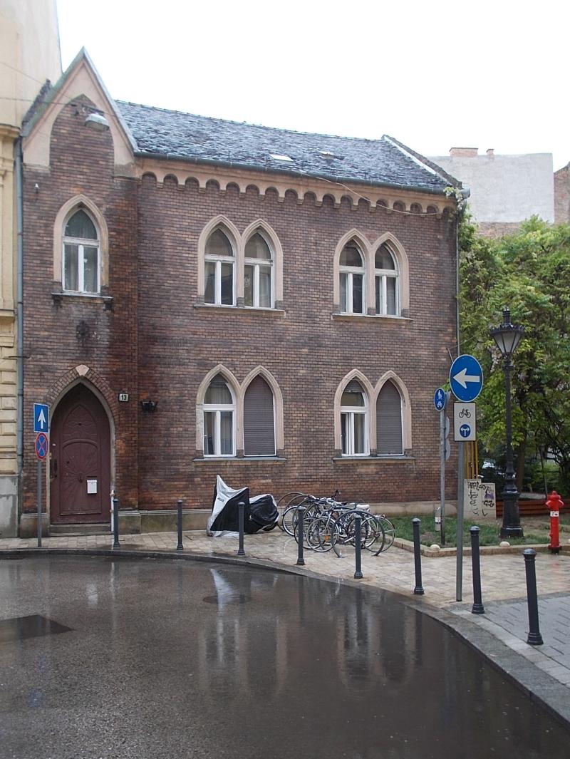 Az egyemeletes és négytengelyes ház a századfordulón épült. A földszinten a kapu bejárat képezi az egyik tengelyt: Úgy a kapu, mint az ablakok nyílása gótikus ívű. Annak ellenére, hogy az ablakok egyszárnyúak, középen pillérek vannak, amelyen a gótikus ablakok egyik oldala nyugszik. A kapun a gótikus összefutásnál kívül fogazatos belül háromszög alakú mintázat van. A kapun a kopogtató, a kilincs, valamint a zár pajzsa kovácsoltvasból van. A koronapárkány vakívsoros a kapu tengelye felett egy hegyesszögű csúcsban végződik a homlokzat. Az épület lábazata terméskő, felül mindenhol klinkertéglával van burkolva a homlokzat. A kapu feletti kovácsoltvas dísz van, közepén egy kosfejjel. Az épület kapualja két oldalt falpilléres, a pillérek közötti átívelések vannak, a mennyezet tükörmennyezet. Az egyenes folyosó végén egy ajtón keresztül egy kicsi kertbe jutunk. A lépcsőház korlátja pálcás rendszerű, a megvilágítást valamikor színes üveg adta, mely néhol még megvan. Az egész épületben öt lakó van.
