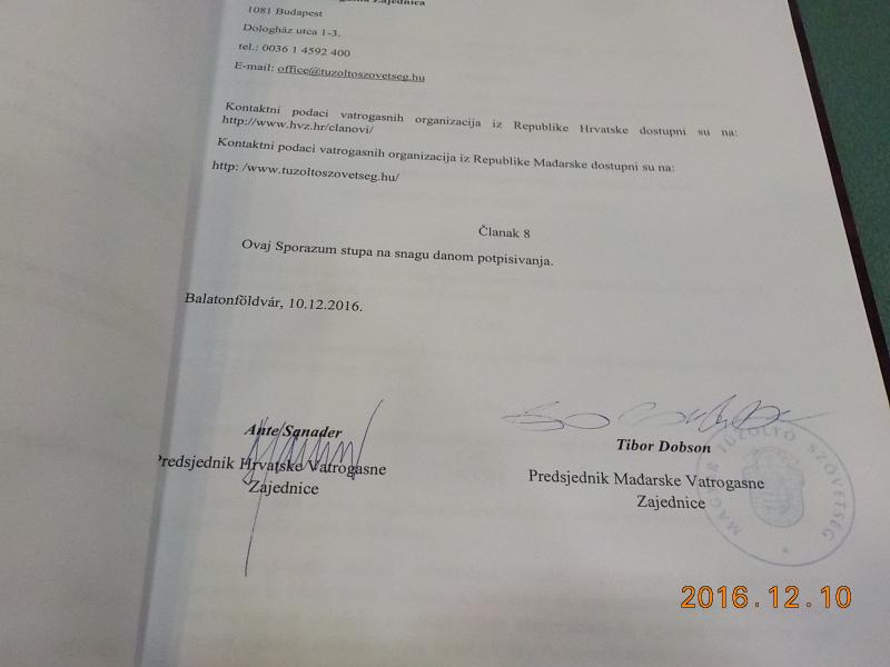 Együttműködési megállapodás a Horvát Tűzoltó Szövetséggel